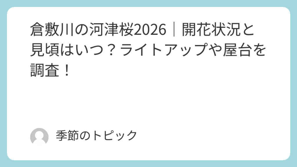 この記事では、倉敷川の河津桜が例年いつ頃見頃になるのか、時期の目安や気をつけたいポイントをまとめました。